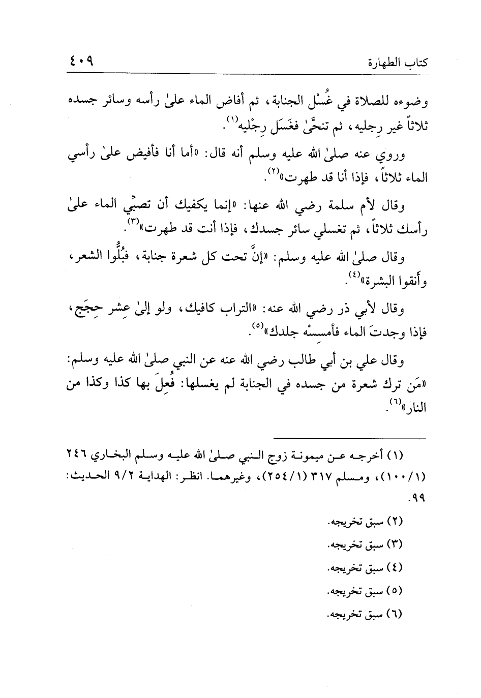 وقال علي بن أبي طالب رضي الله عنه عن النبي صلى الله عليه وسلم: "من ترك شعرة من جسده في الجنابة لم يغسلها: فعل بها كذا وكذا من النار".