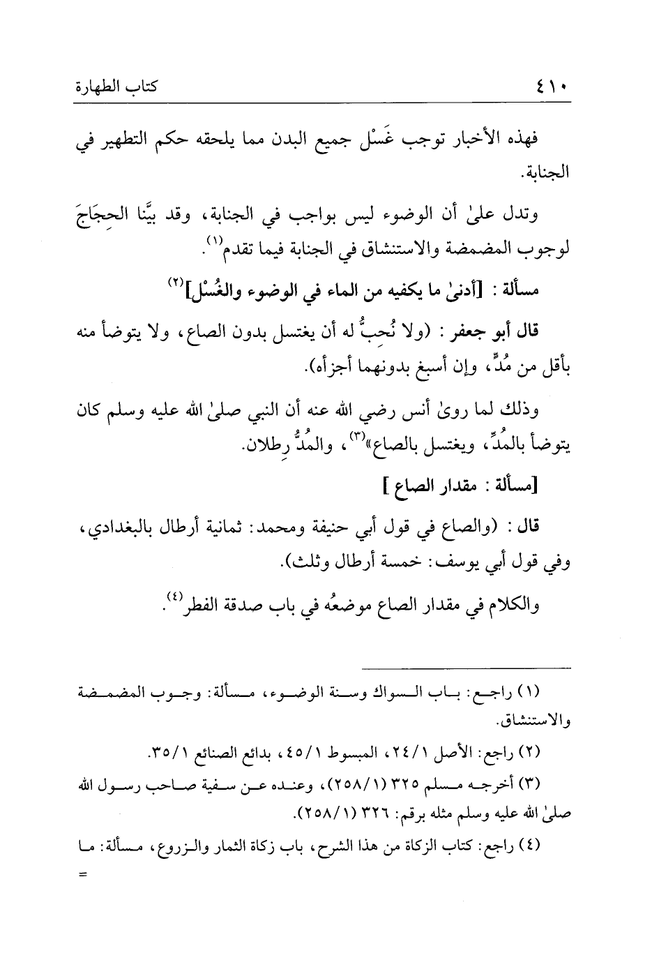 قال أبو جعفر: (ولا نحب له أن يغتسل بدون الصاع، ولا يتوضأ منه بأقل من مد، وإن أسبغ بدونهما أجزأه).