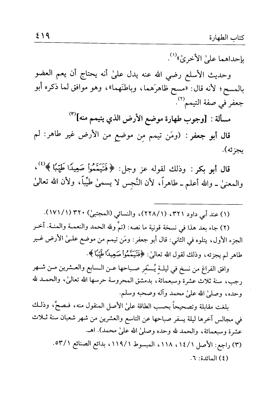 قال أبو بكر: وذلك لقوله عز وجل: {فَتَيَمَّمُوا صَعِيدًا طَيِّبًا}، والمعنى –والله أعلم –طاهرًا، لأن النجس لا يسمى طيبًا، ولأن الله تعالى