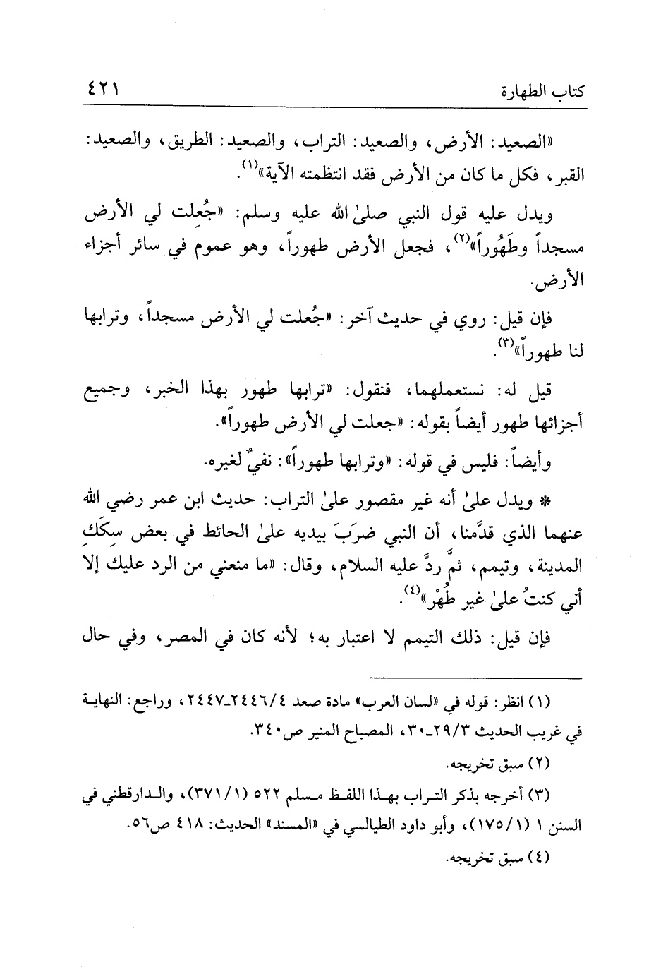 * ويدل على انه غير مقصور على التراب: حديث ابن عمر رضي الله عنهما الذي قدمنا، أن النبي ضرب بيديه على الحائط في بعض سكك المدينة، وتيمم، ثم رد عليه السلام، وقال: "ما منعني من الرد عليك إلا أني كنت على غير طهر".