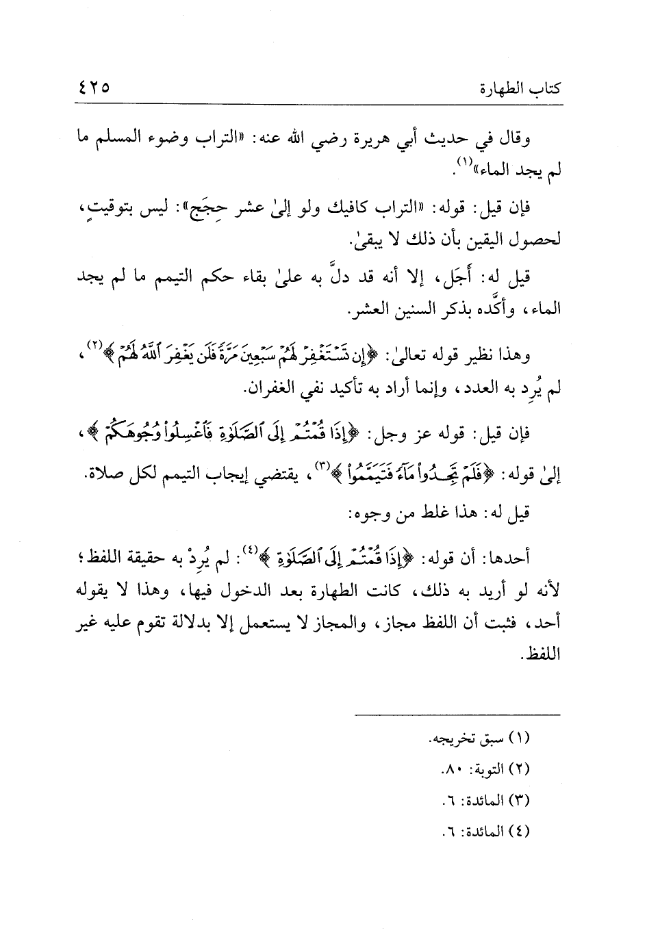 فإن قيل: قوله: "التراب كافيك ولو إلى عشر حجج": ليس بتوقيت، لحصول اليقين بأن ذلك لا يبقى.