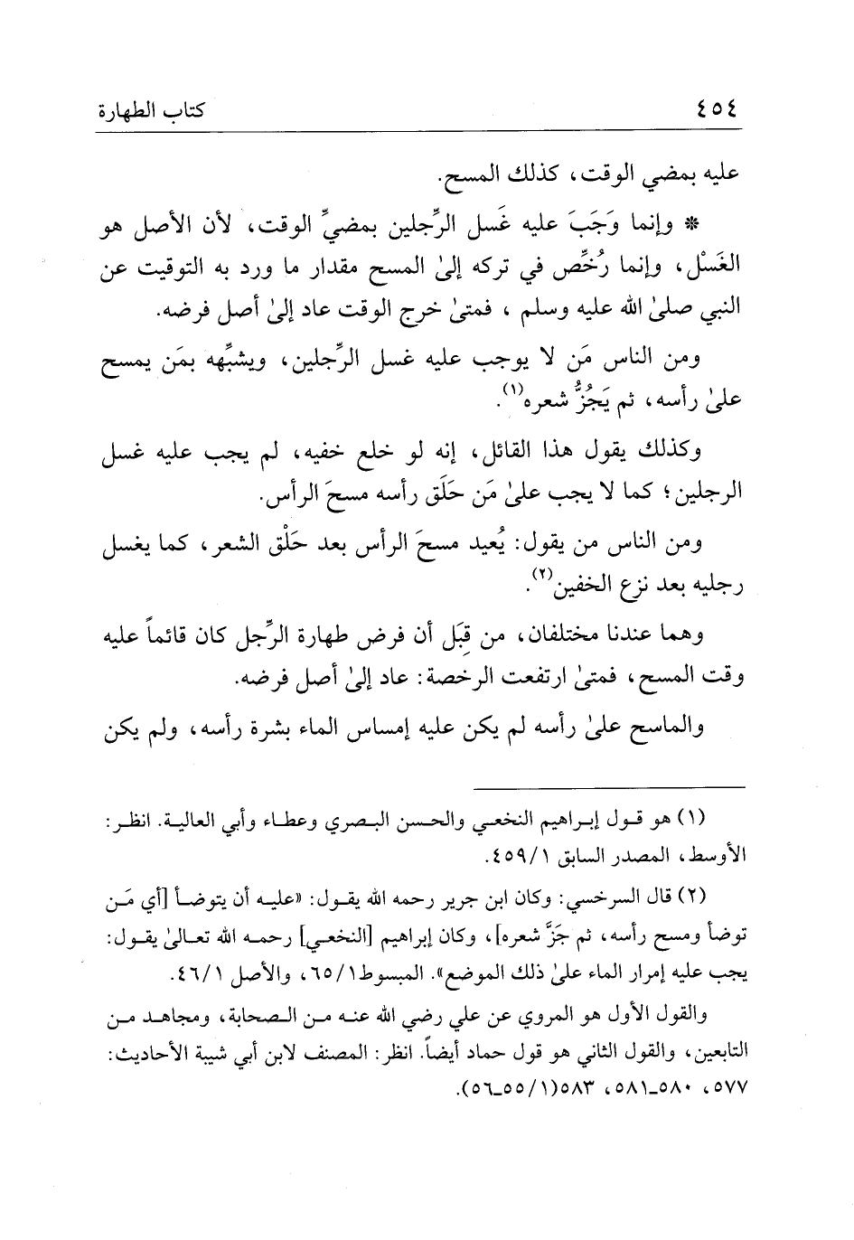ومن الناس من لا يوجب عليه غسل الرجلين، ويشبهه بمن يمسح على رأسه، ثم يجز شعره.