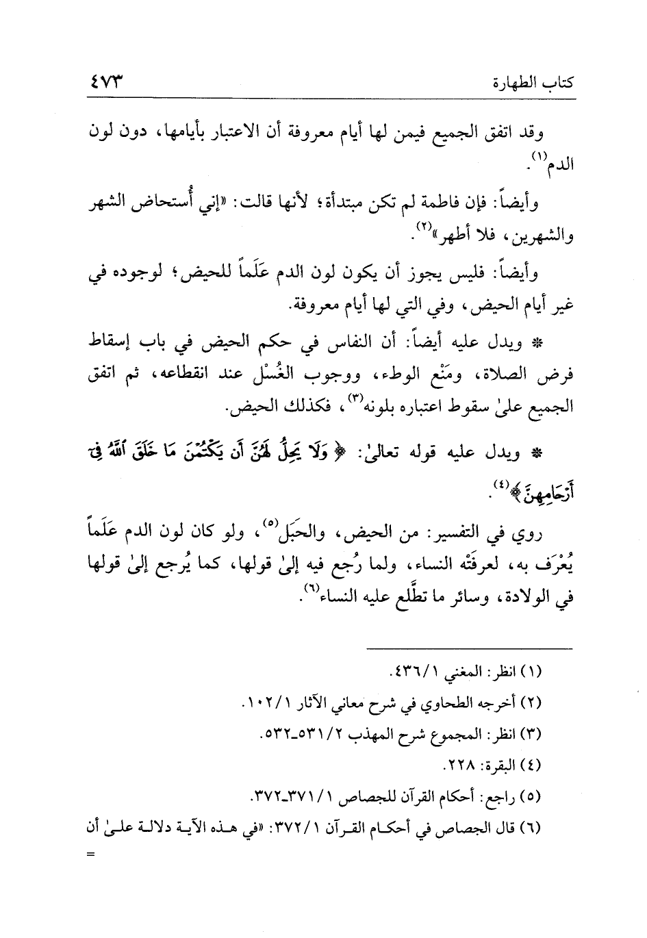 * ويدل عليه أيضًا: أن النفاس في حكم الحيض في باب إسقاط فرض الصلاة، ومنع الوطء، ووجوب الغسل عند انقطاعه، ثم اتفق الجميع على سقوط اعتباره بلونه، فكذلك الحيض.