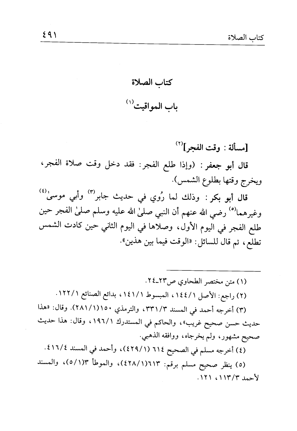 قال أبو جعفر: (وإذا طلع الفجر: فقد دخل وقت صلاة الفجر، ويخرج وقتها بطلوع الشمس).