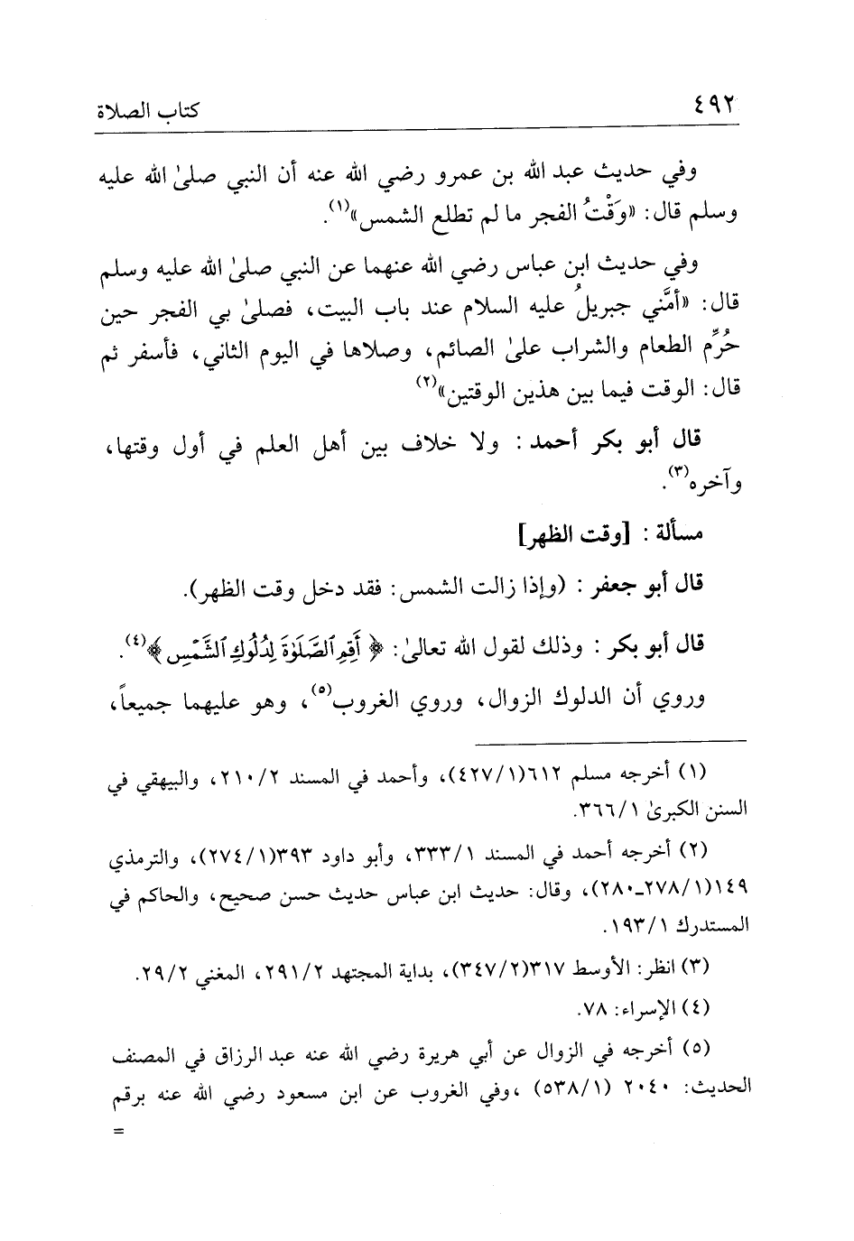 قال أبو بكر أحمد: ولا خلاف بين أهل العلم في أول وقتها، وآخره.