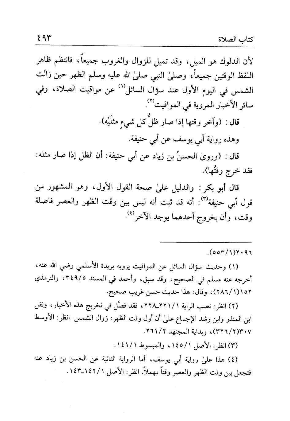 قال أبو بكر: والدليل على صحة القول الأول، وهو المشهور من قول أبي حنيفة: أنه قد ثبت أنه ليس بين وقت الظهر والعصر فاصلة وقت، وأن بخروج أحدهما يوجد الآخر.