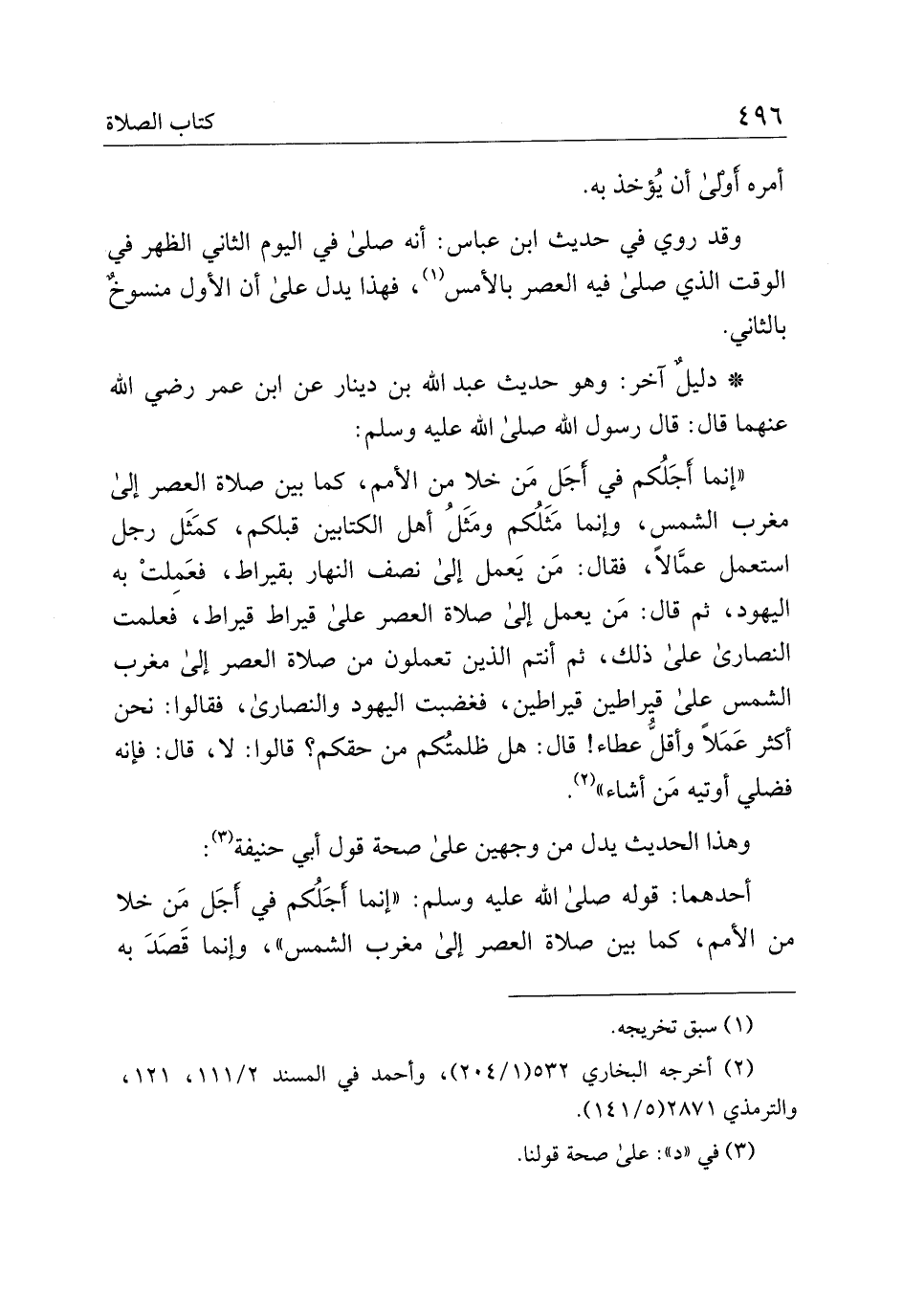 "إنما أجلكم في أجل من خلا من الأمم، كما بين صلاة العصر إلى مغرب الشمس، وإنما مثلكم ومثل أهل الكتابين قبلكم، كمثل رجل استعمل عمالًا، فقال: من يعمل إلى صلاة العصر على قيراط قيراط، فعلمت النصارى على ذلك، ثم أنتم الذين تعملون ن صلاة العصر إلى مغرب الشمس على قيراطين قيراطين، فغضبت اليهود والنصارى، فقالوا: نحن أكثر عملًا وأقل عطاء! قال: هل ظلمتكم من حقكم؟ قالوا: لا، قال: فإنه فضلي أوتيه من أشاء".