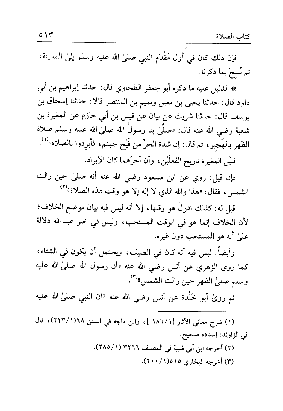 * الدليل عليه ما ذكره أبو جعفر الطحاوي قال: حدثنا إبراهيم بن أبى داود قال: حدثنا يحيى بن معين وتميم بن المنتصر قالا: حدثنا إسحاق بن يوسف قال: حدثنا شريك عن بيان عن قيس بن أبي حازم عن المغيرة بن شعبة رضي الله عنه قال: "صلى بنا رسول الله صلى الله عليه وسلم صلاة الظهر بالهجير، ثم قال: إن شدة الحر من قيح جهنم، فأبردوا بالصلاة".