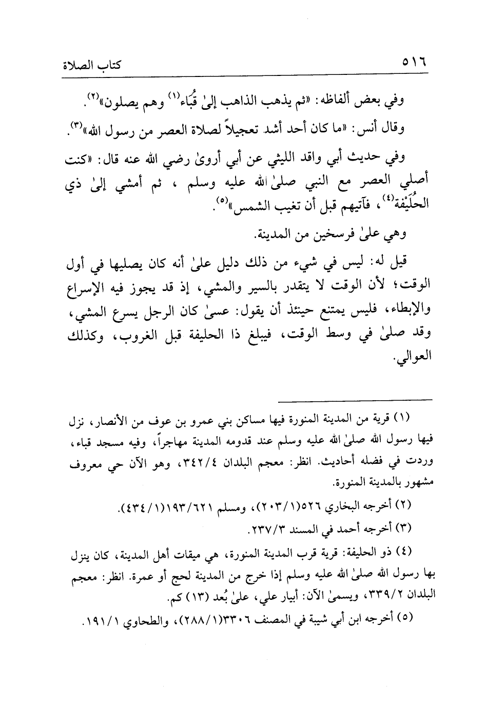 وفي حديث أبي واقد الليثي عن أبي أروى رضي الله عنه قال: "كنت أصلي العصر مع النبي صلى الله عليه وسلم، ثم أمشي إلى ذي الحليفة، فآتيهم قبل أن تغيب الشمس".