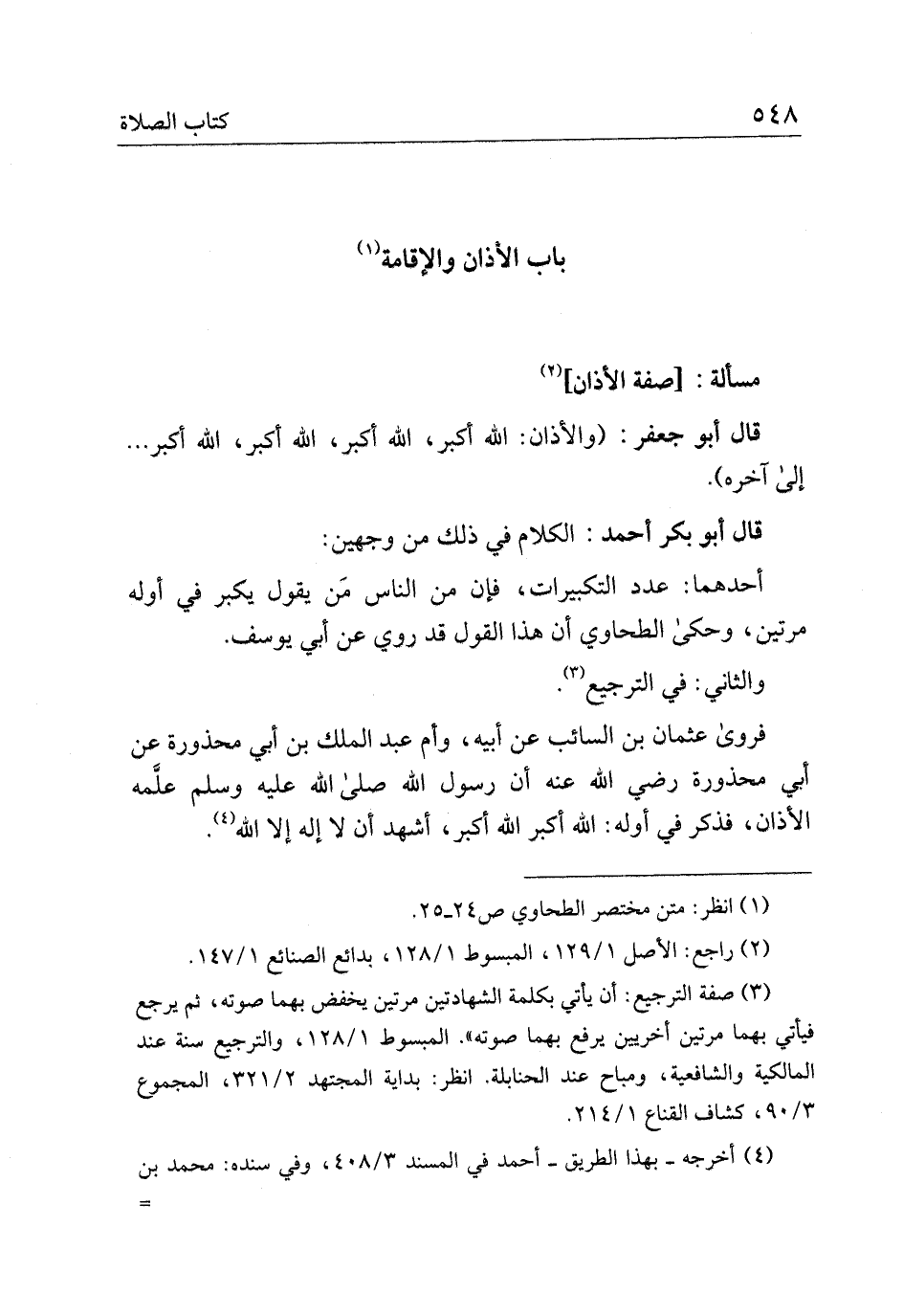 قال أبو جعفر: (والآذان: الله أكبر، الله أكبر، الله أكبر، الله أكبر ... إلى آخره).