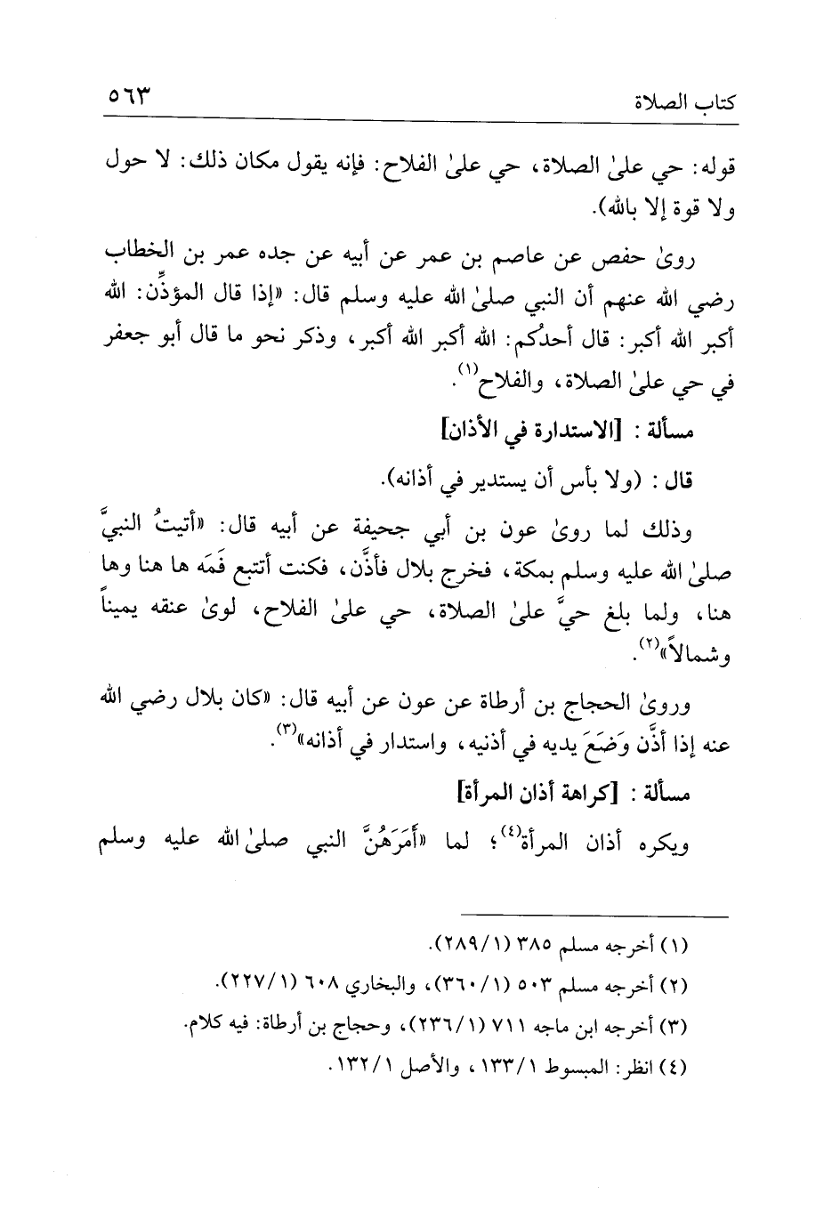 قوله: حي على الصلاة، حي على الفلاح: فإنه يقول مكان ذلك: لا حول ولا قوة إلا بالله).