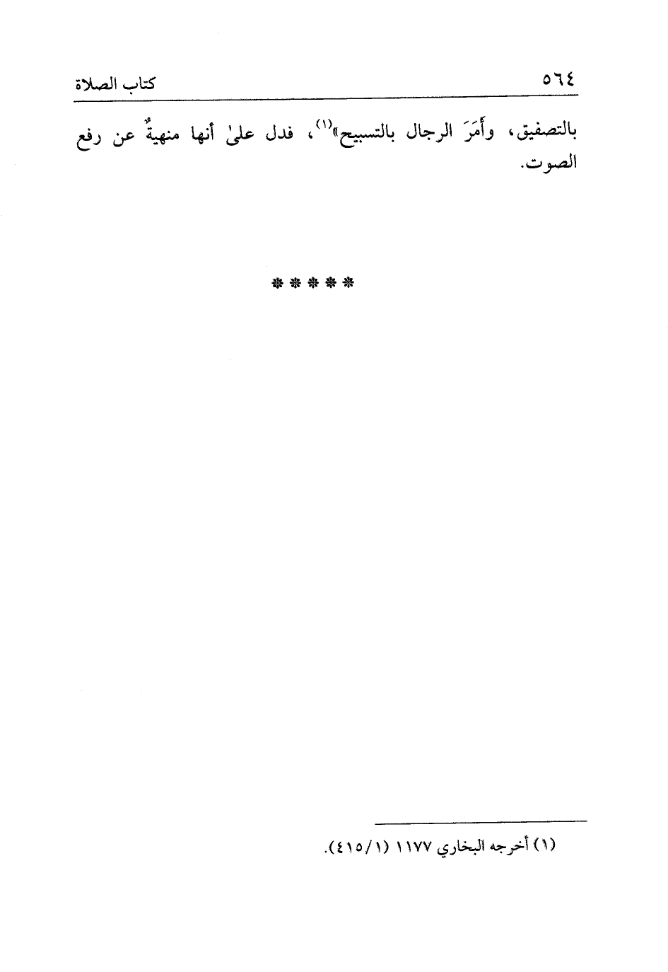 بالتصفيق، وأمر الرجال بالتسبيح"، فدل على أنها منهية عن رفع الصوت.