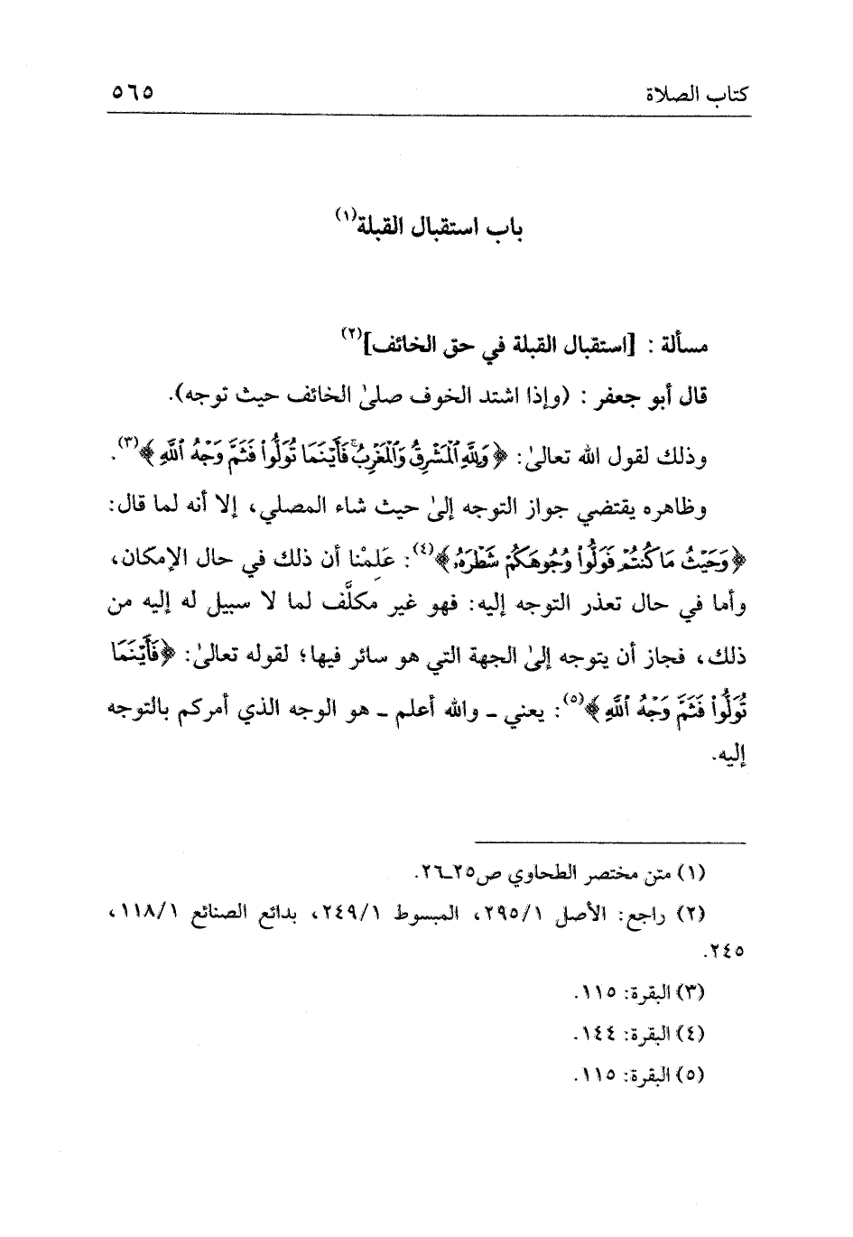 قال أبو جعفر: (وإذا اشتد الخوف صلى الخائف حيث توجعه).