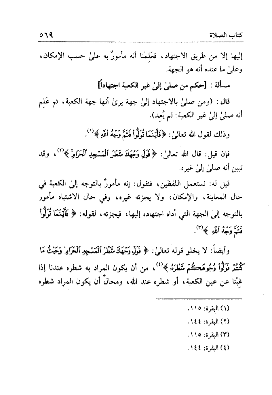 وأيضًا: لا يخلو قوله تعالى:} فول وجهك شطر المسجد الحرام وحيث ما كنتم فولوا وجوهكم شطره {، من أن يكون المراد به شطره عندنا إذا غبنا عن عين الكعبة، أو شطره عند الله، ومحال أن يكون المراد شطره