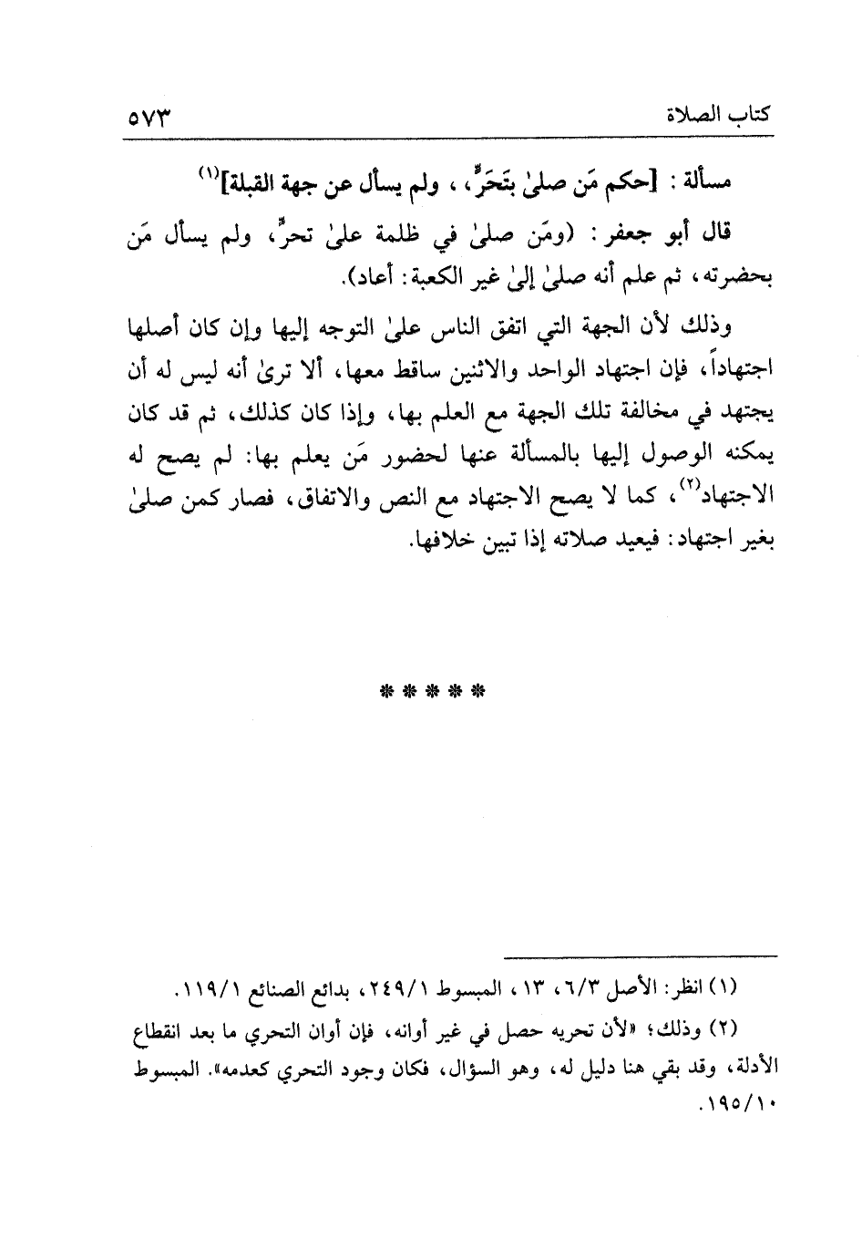 قال أبو جعفر: (ومن صلى في ظلمة على تحر، ولم يسأل من بحضرته، ثم علم أنه صلى إلى غير الكعبة: أعاد).