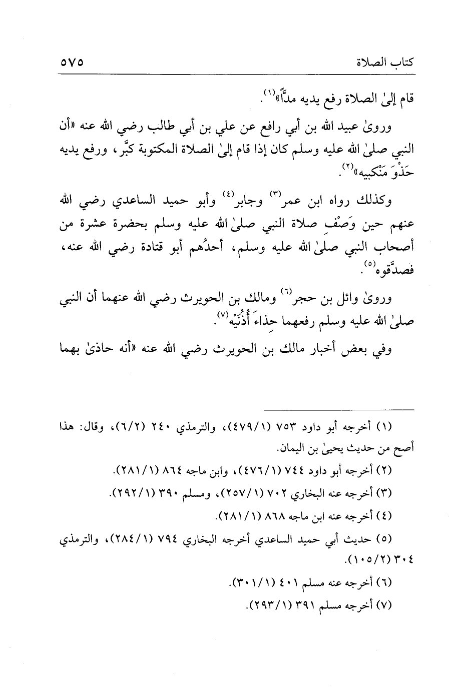 وروى عبيد الله بن أبي رافع عن علي بن أبي طالب رضي الله عنه "أن النبي صلى الله عليه وسلم كان إذا قام إلى الصلاة المكتوبة كبر، ورفع يديه حذو منكبيه".