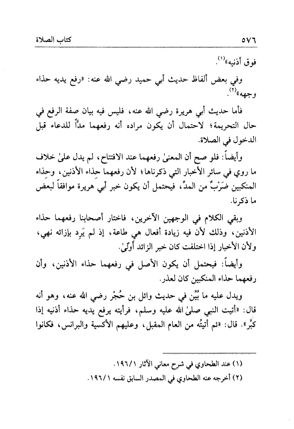 وأيضًا: فلو صح أن المعنى رفعهما عند الافتتاح، لم يدل على خلاف ما روي في سائر الأخبار التي ذكرناها، لأن رفعهم حذاء الأذنين، وحذاء المنكبين ضرب من المد، فيحتمل أن يكون خبر أبي هريرة موافقًا لبعض ما ذكرنا.