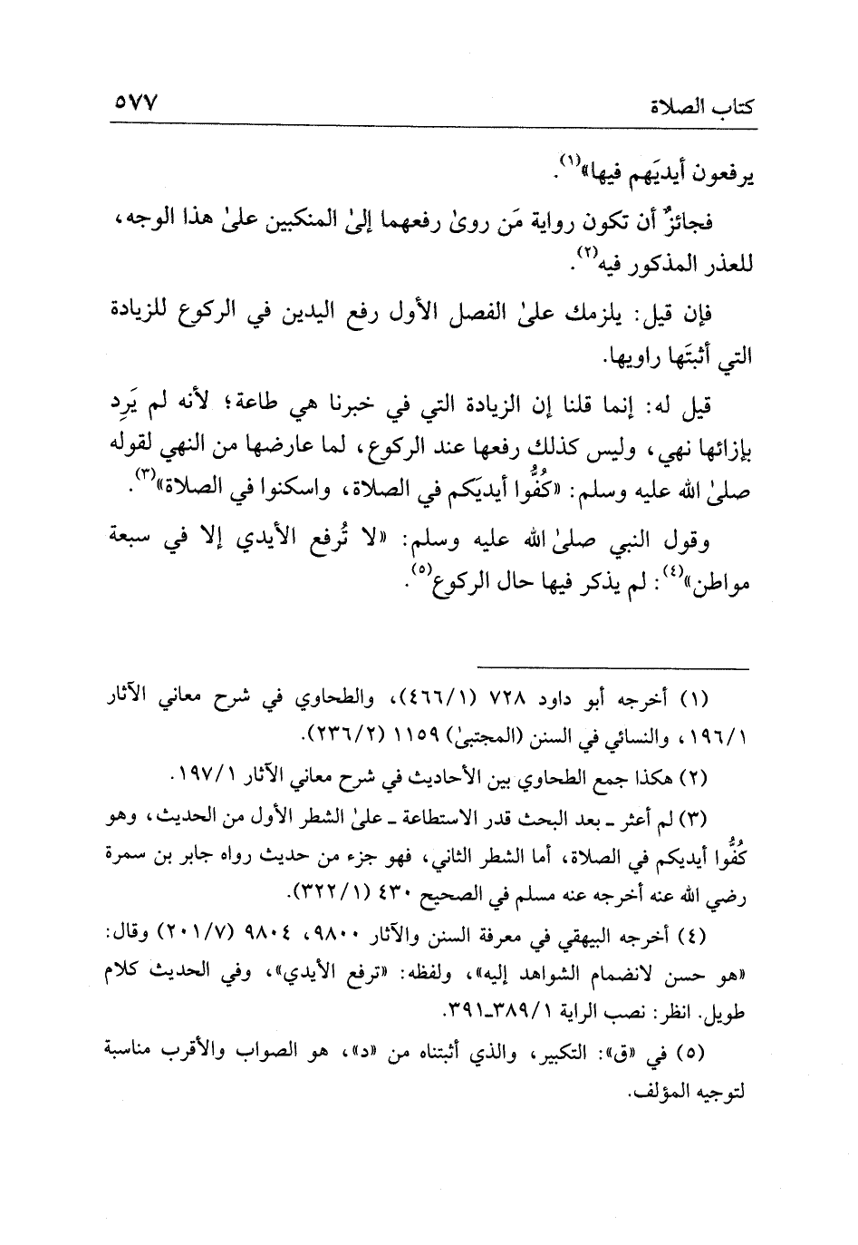 قيل له: إنما قلنا إن الزيادة التي في خبرنا هي طاعة؛ لأنه لم يرد بإزائها نهي، وليس كذلك رفعها عند الركوع، لما عارضها من النهي لقوله صلى الله عليه وسلم: "كفوا أيديكم في الصلاة، واسكنوا في الصلاة".