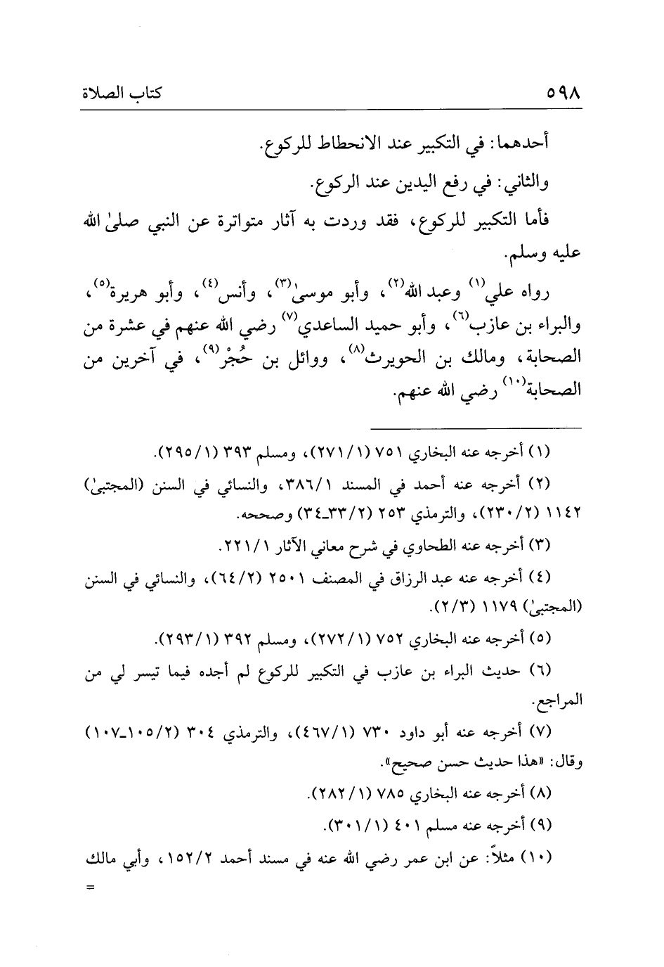 رواه علي وعبد الله، وأبو موسى، وأنس، وأبو هريرة، والبراء بن عازب، وأبو حميد الساعدي رضي الله عنهم في عشرة من الصحابة، ومالك بن الحويرث، ووائل بن حجر، في آخرين الصحابة رضي الله عنهم.