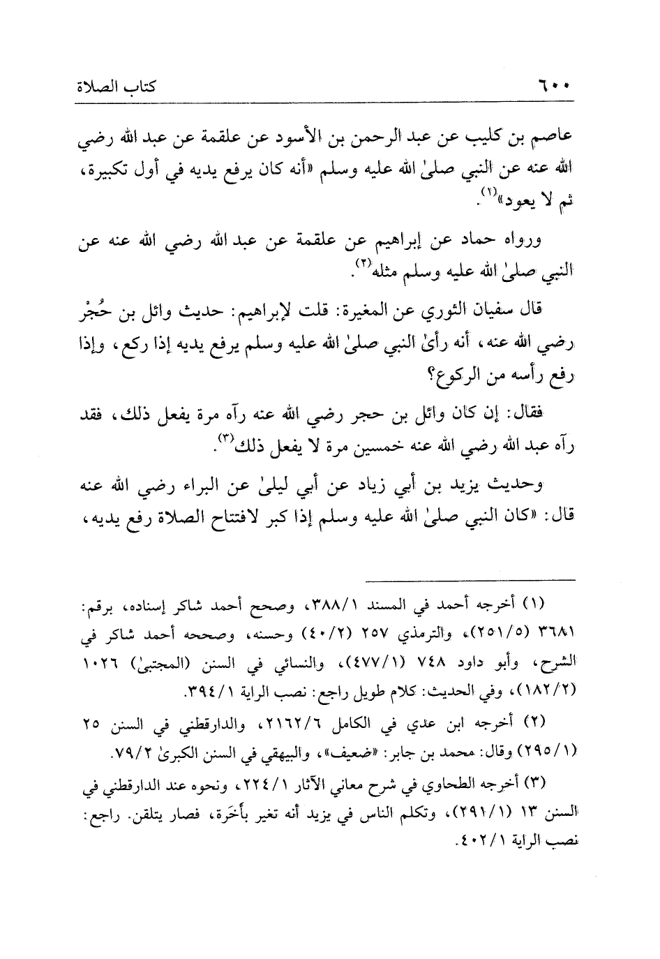 عاصم بن كليب عن عبد الرحمن بن الأسود عن علقمة عن عبد الله رضي الله عنه عن النبي صلى الله عليه وسلم "أنه كان يرفع يديه في أول تكبيره، ثم لا يعود".