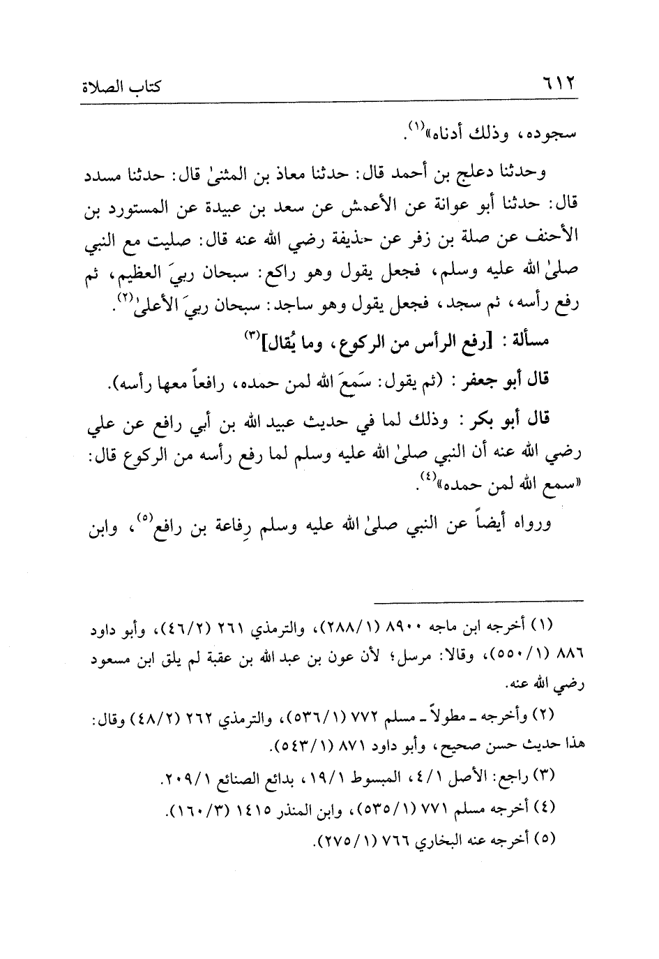 مسألة:] رفع الرأس من الركوع، وما يقال [