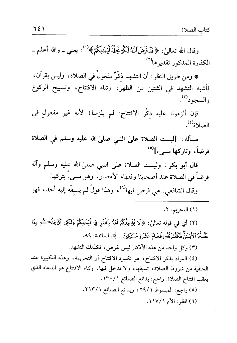 مسألة:] ليست الصلاة على النبي صلى الله عليه وسلم في الصلاة فرضا، وتاركها مسيء]
