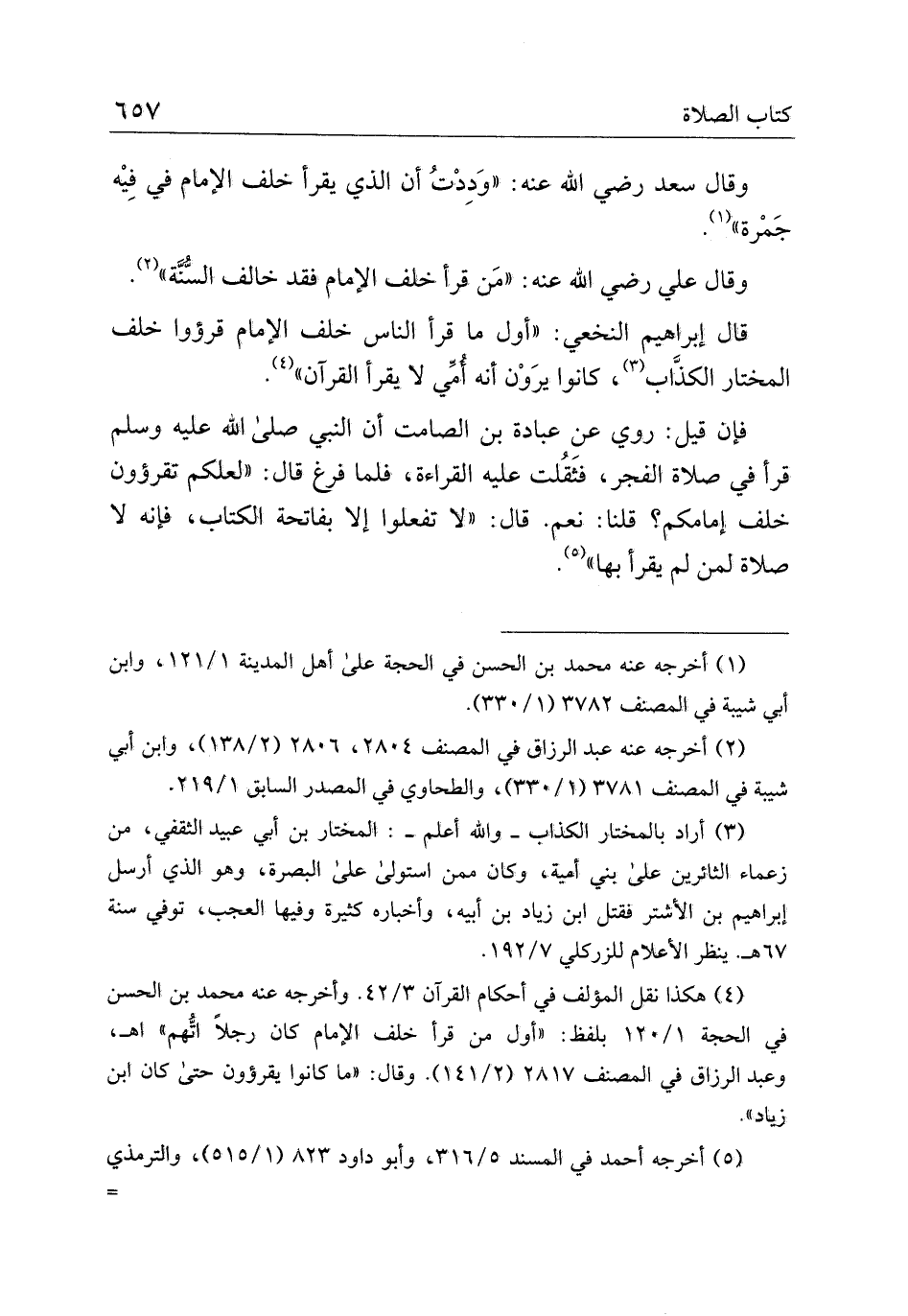 قال إبراهيم النخعي: "أول ما قرأ الناس خلف الإمام قرؤوا خلف المختار الكذاب، كانوا يرون أنه أمي لا يقرأ القرآن".