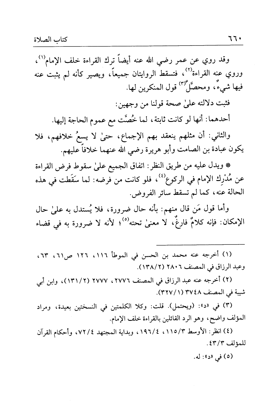 وقد روي عن عمر رضي الله عنه أيضا ترك القراءة خلف الإمام، وروي عنه القراءة، فتسقط الروايتان جميعا، ويصير كأنه لم يثبت عنه فيها شيء، ومحصل قول المنكرين لها.