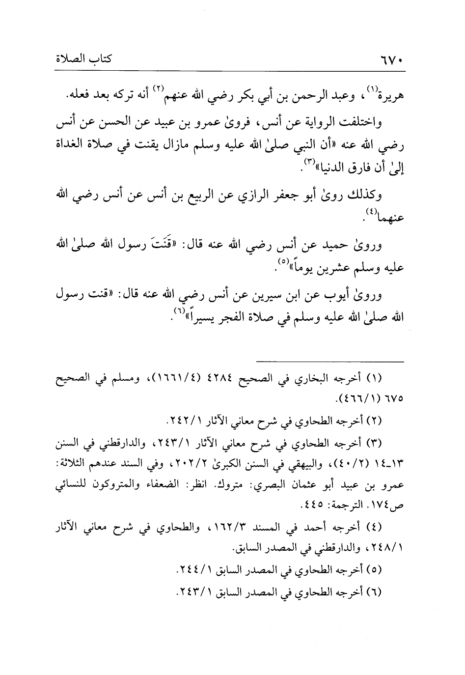 واختلفت الرواية عن أنس، فروى عمرو بن عبيد عن الحسن عن أنس رضي الله عنه "أن النبي صلى الله عليه وسلم مازال يقنت في صلاة الغداة إلى أن فارق الدنيا".