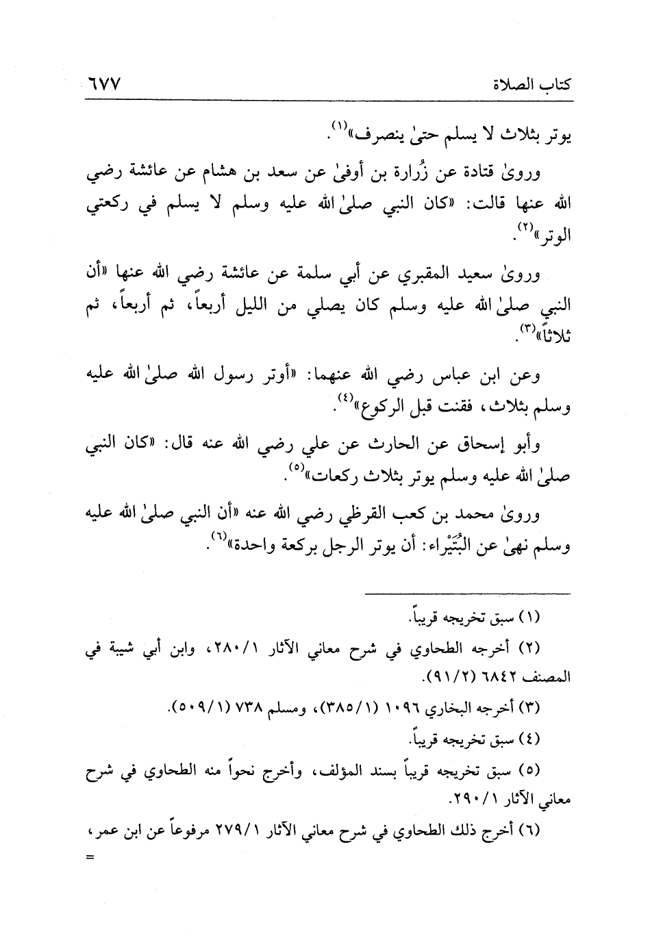 وروى سعيد المقبري عن أبي سلمة عن عائشة رضي الله عنها "أن النبي صلى الله عليه وسلم كان يصلي من الليل أربعا، ثم أربعا، ثم ثلاثا".
