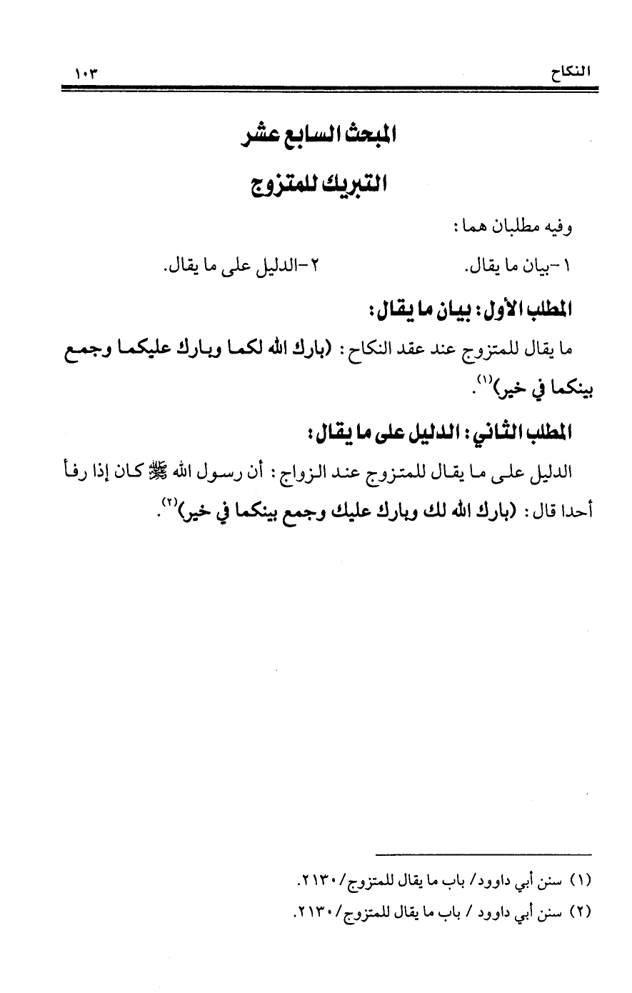 (¬1) سنن أبي داوود/ باب ما يقال للمتزوج/ 2130.