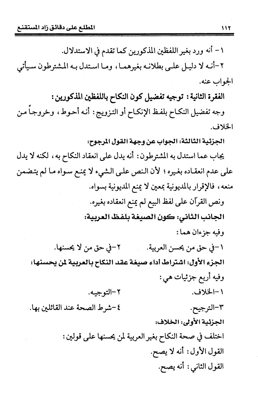 الجزء الأول: اشتراط أداء صيغة عقد النكاح بالعريية لمن يحسنها: