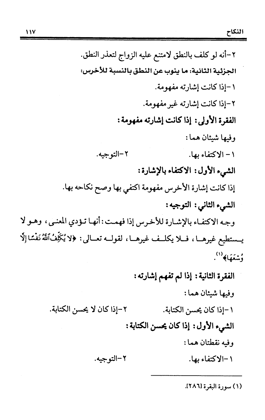 وجه الاكتفاء بالإشارة للأخرس إذا فهمت: أنها تؤدي المعنى، وهو لا يستطيع غيرها، فلا يكلف غيرها، لقوله تعالى: {لَا يُكَلِّفُ اللَّهُ نَفْسًا إِلَّا وُسْعَهَا} (¬1).