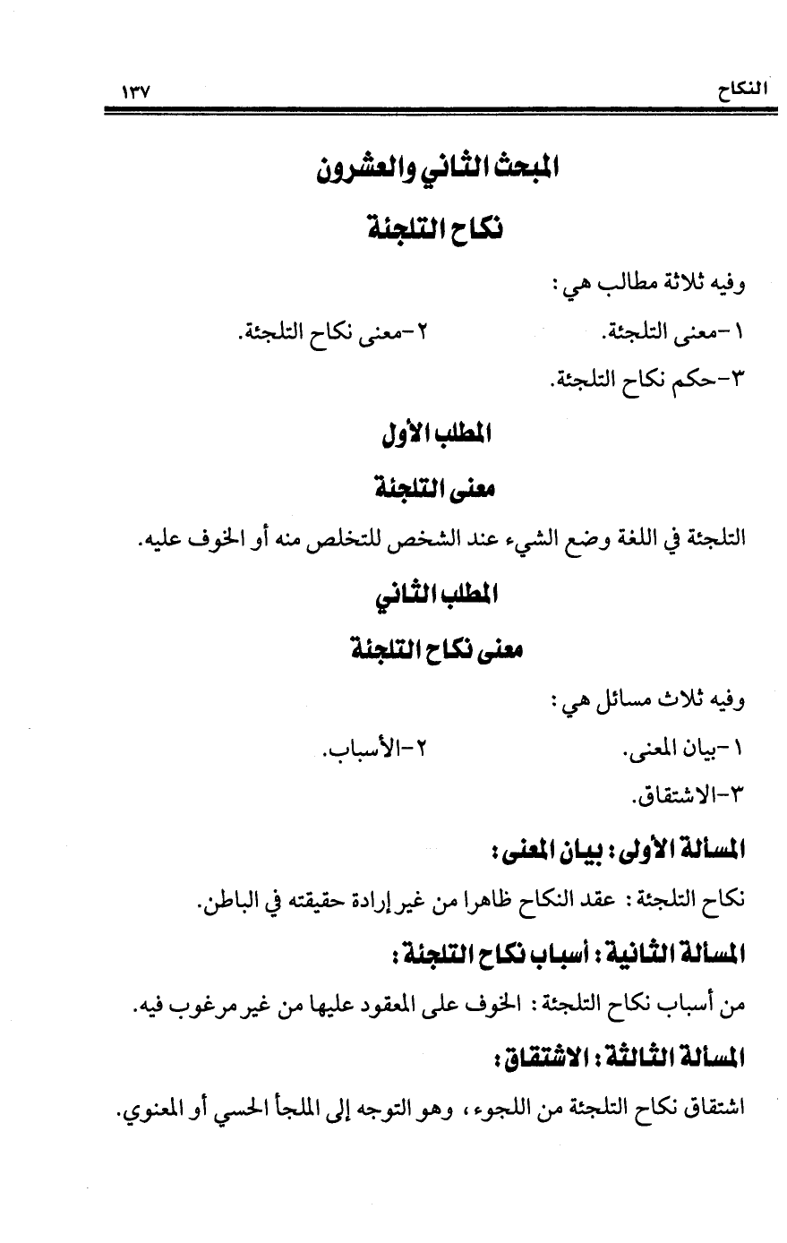 المبحث الثاني والعشرون نكاح التلجئة