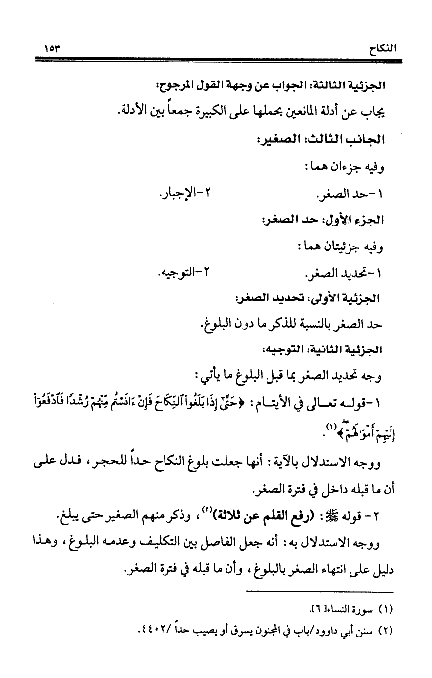 ووجه الاستدلال به: أنه جعل الفاصل بين التكليف وعدمه البلوغ، وهذا دليل على انتهاء الصغر بالبلوغ، وأن ما قبله في فترة الصغر.