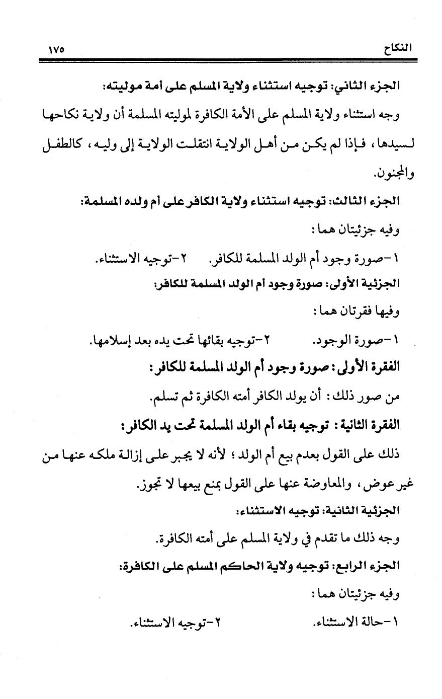 الجزء الثالث: توجيه استثناء ولاية الكافر على أم ولده المسلمة: