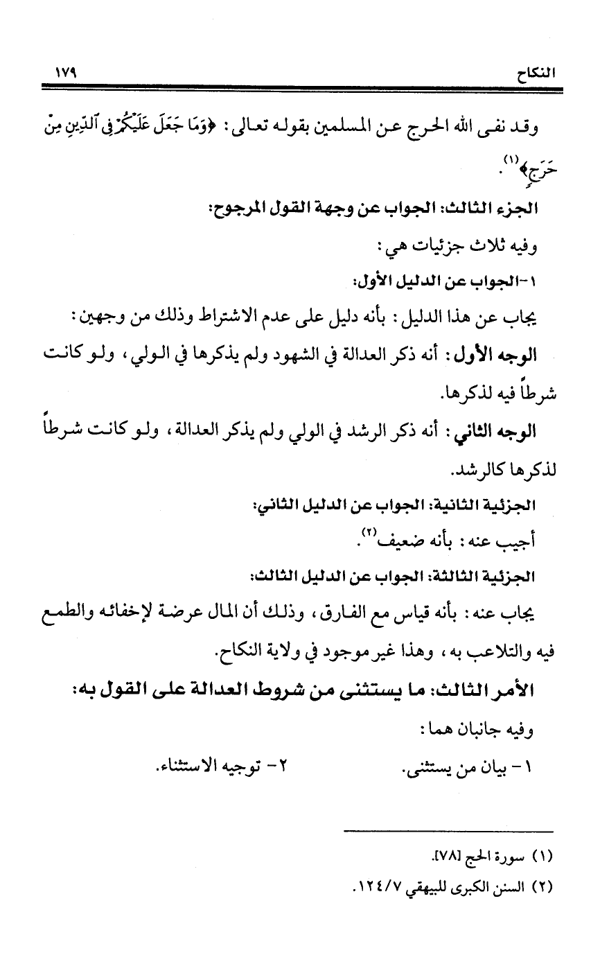 الجزء الثالث: الجواب عن وجهة القول المرجوح: