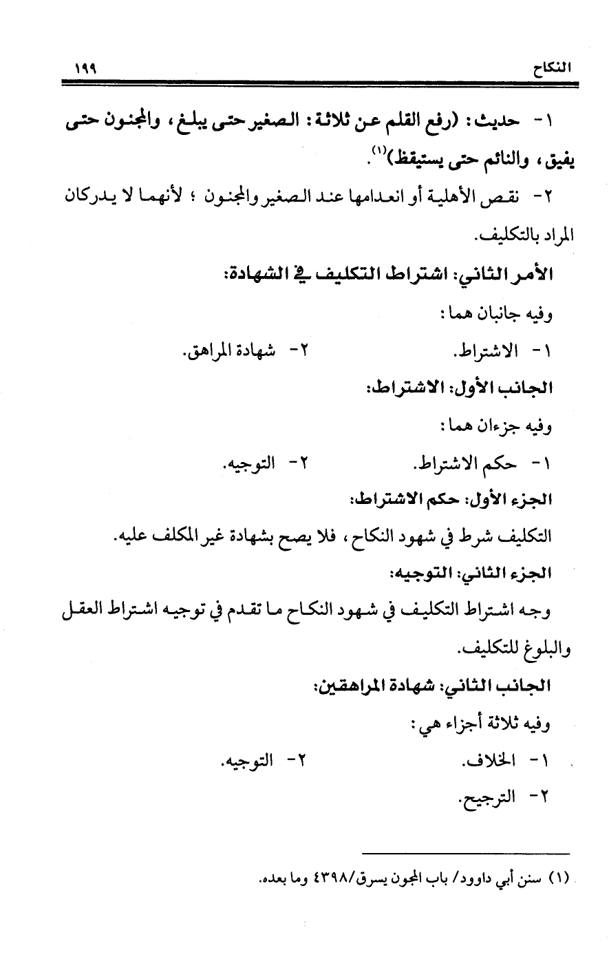 التكليف شرط في شهود النكاح، فلا يصح بشهادة غير المكلف عليه.