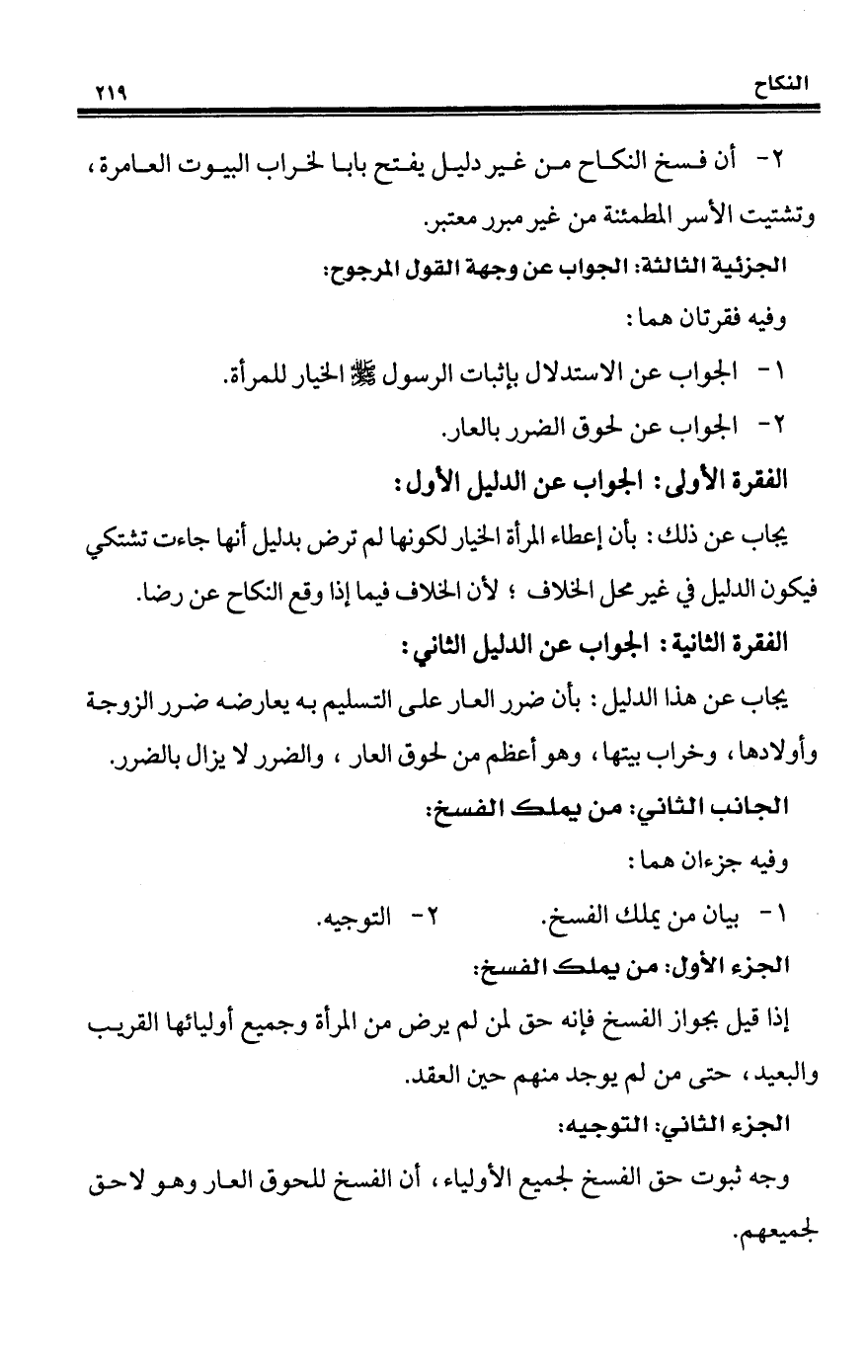 1 - الجواب عن الاستدلال بإثبات الرسول - صلى الله عليه وسلم - الخيار للمرأة.