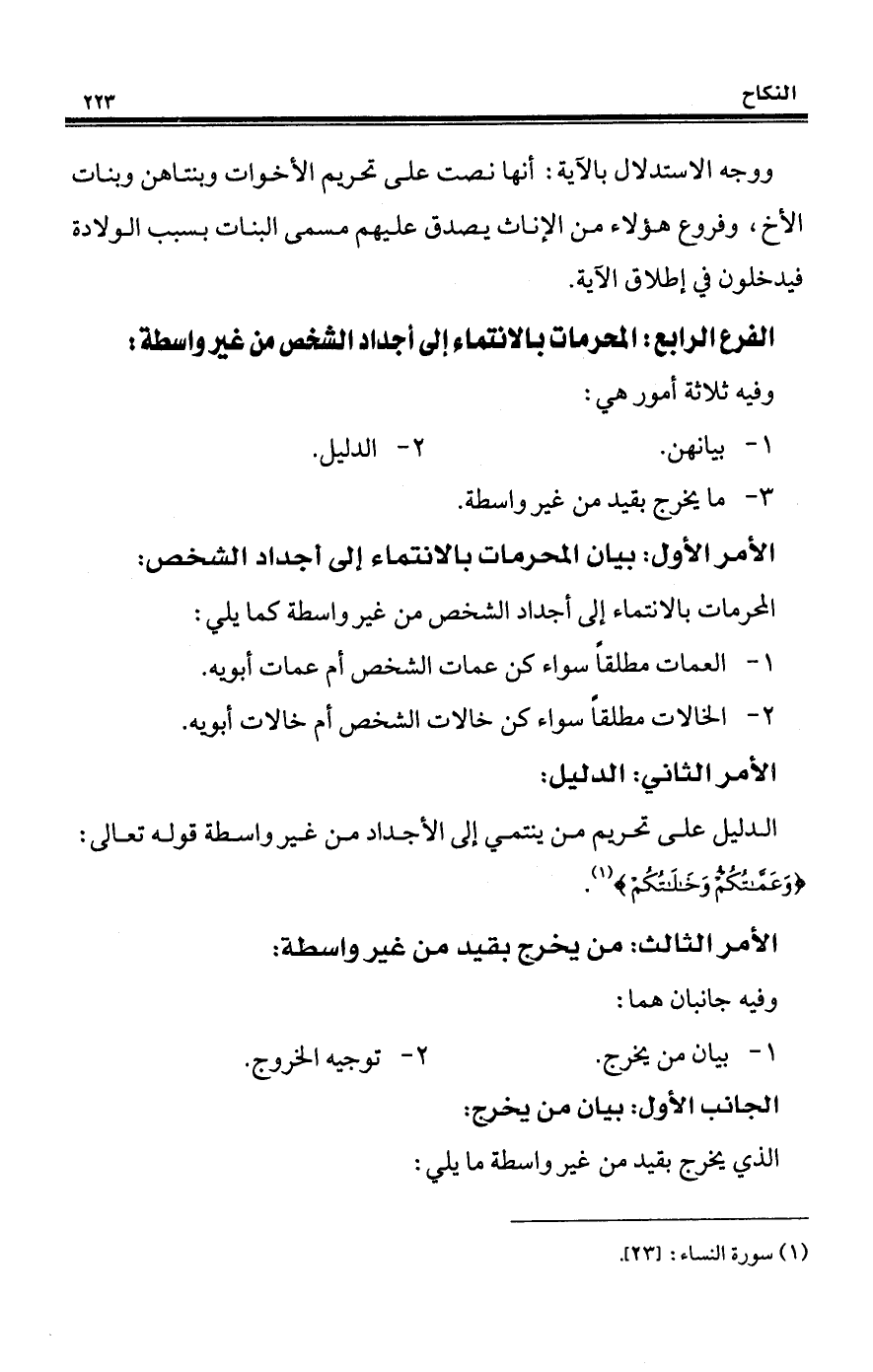 الأمر الأول: بيان المحرمات بالانتماء إلى أجداد الشخص: