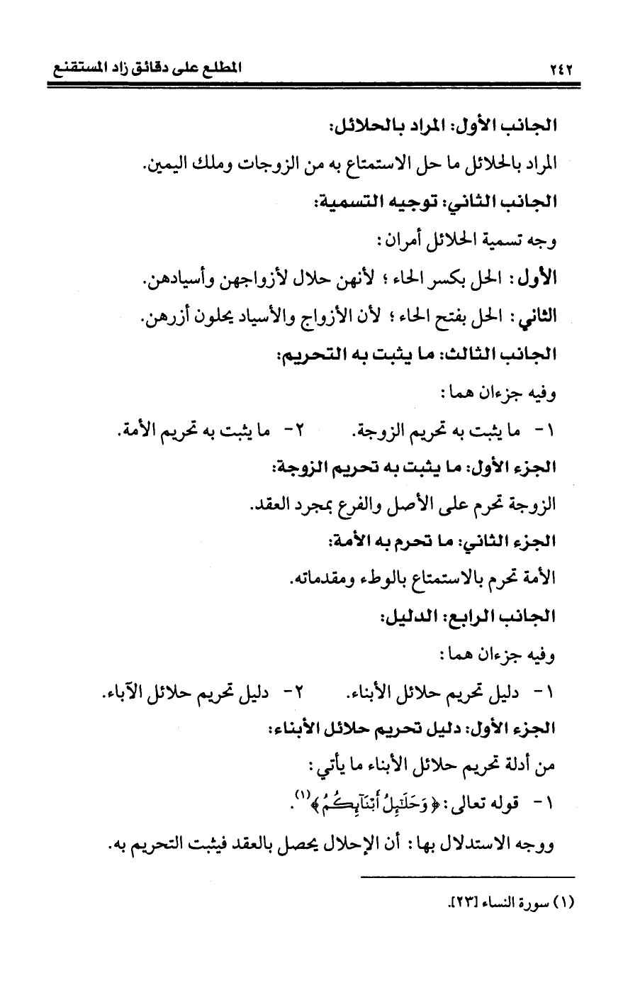 كتاب المطلع على دقائق زاد المستقنع «فقه الأسرة» (اسم الجزء: 1)