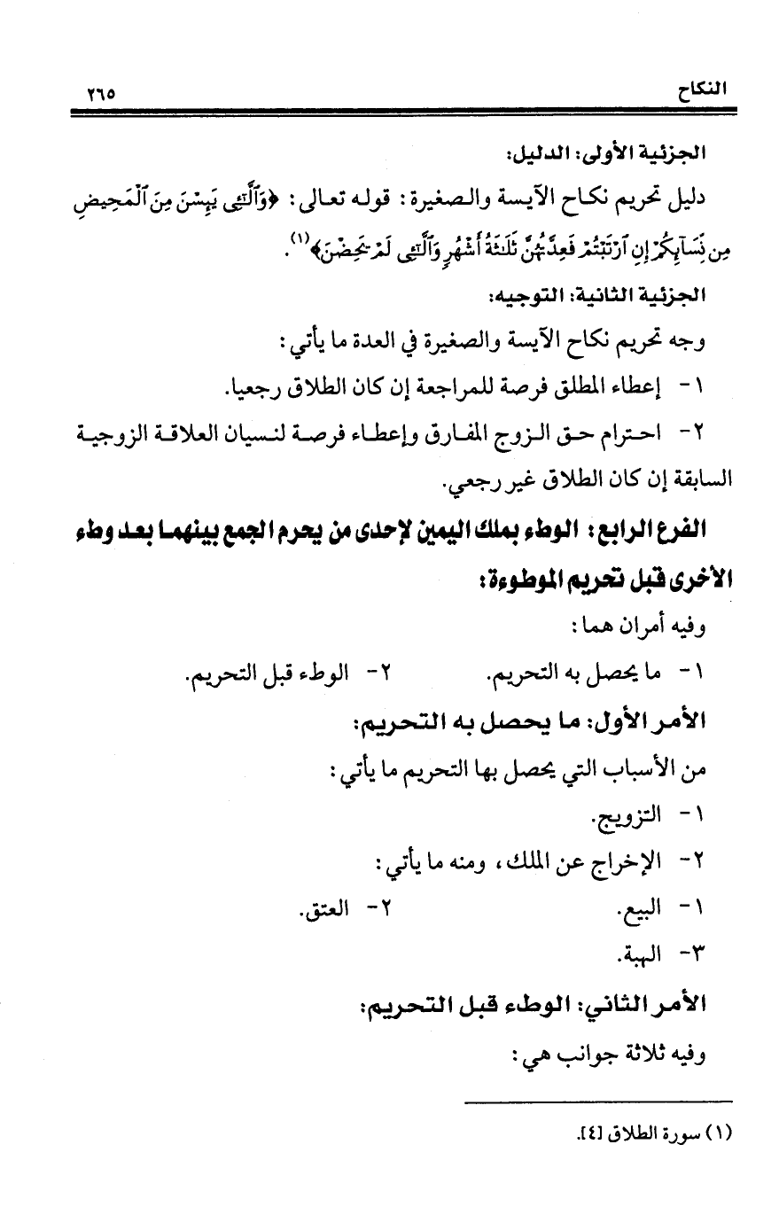 دليل تحريم نكاح الآيسة والصغيرة: قوله تعالى: {وَاللَّائِي يَئِسْنَ مِنَ الْمَحِيضِ مِنْ نِسَائِكُمْ إِنِ ارْتَبْتُمْ فَعِدَّتُهُنَّ ثَلَاثَةُ أَشْهُرٍ وَاللَّائِي لَمْ يَحِضْنَ} (¬1).