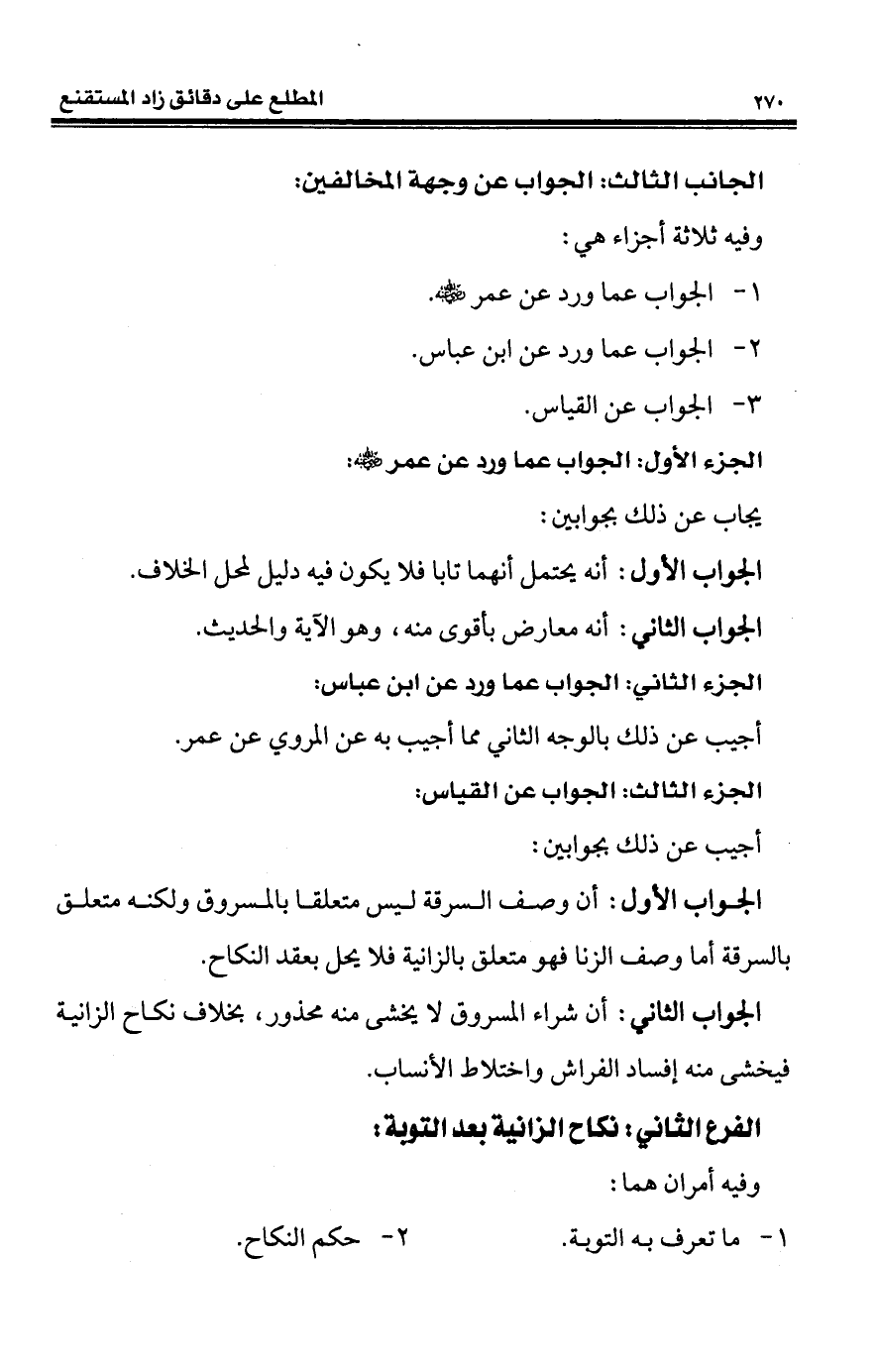 الجواب الأول: أن وصف السرقة ليس متعلقا بالمسروق ولكنه متعلق بالسرقة أما وصف الزنا فهو متعلق بالزانية فلا يحل بعقد النكاح.