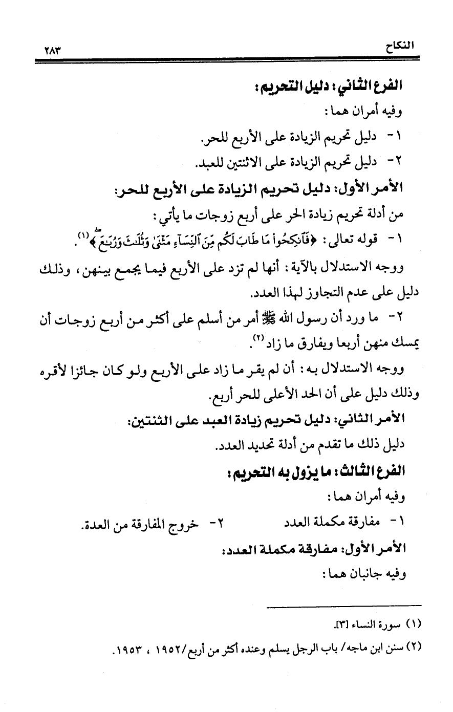 1 - دليل تحريم الزيادة على الأربع للحر.