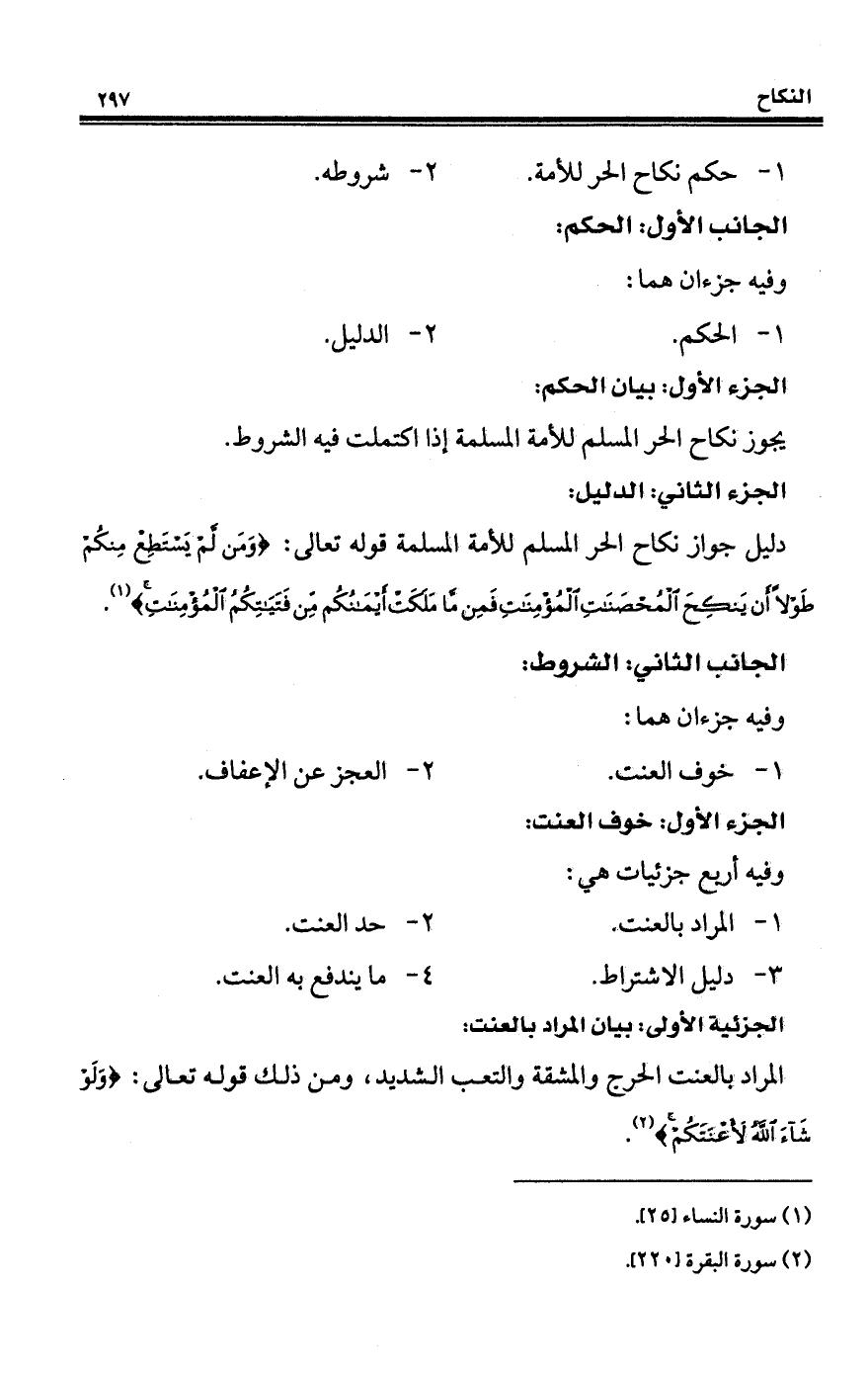 دليل جواز نكاح الحر المسلم للأمة المسلمة قوله تعالى: {وَمَنْ لَمْ يَسْتَطِعْ مِنْكُمْ طَوْلًا أَنْ يَنْكِحَ الْمُحْصَنَاتِ الْمُؤْمِنَاتِ فَمِنْ مَا مَلَكَتْ أَيْمَانُكُمْ مِنْ فَتَيَاتِكُمُ الْمُؤْمِنَاتِ} (¬1).