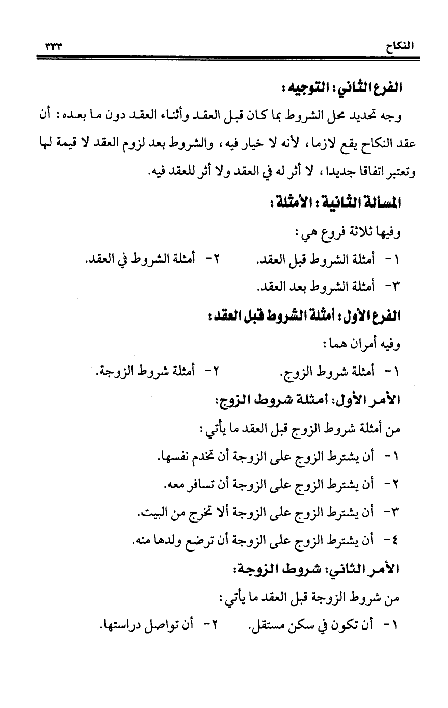 من أمثلة شروط الزوج قبل العقد ما يأتي: