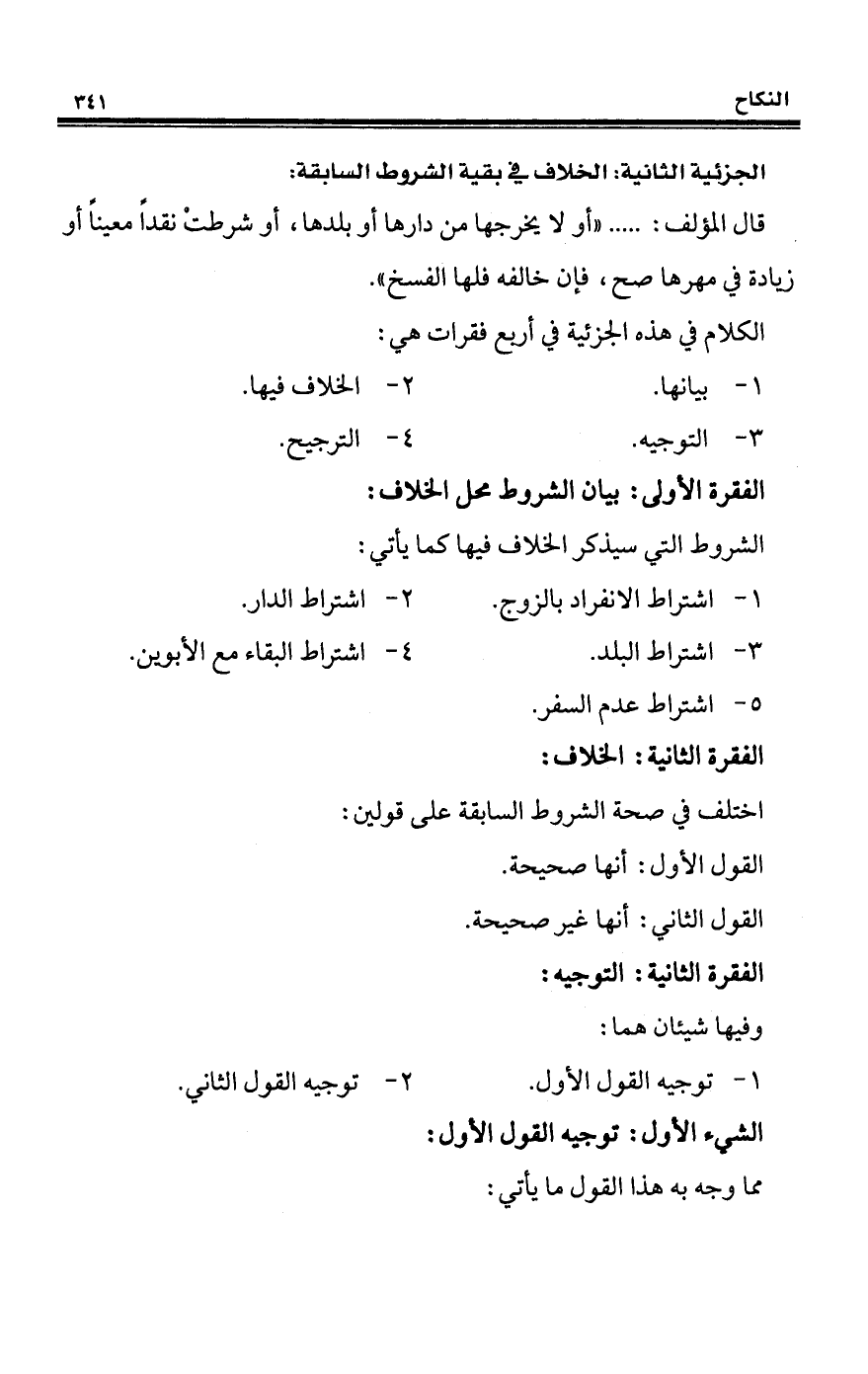 الشروط التي سيذكر الخلاف فيها كما يأتي: