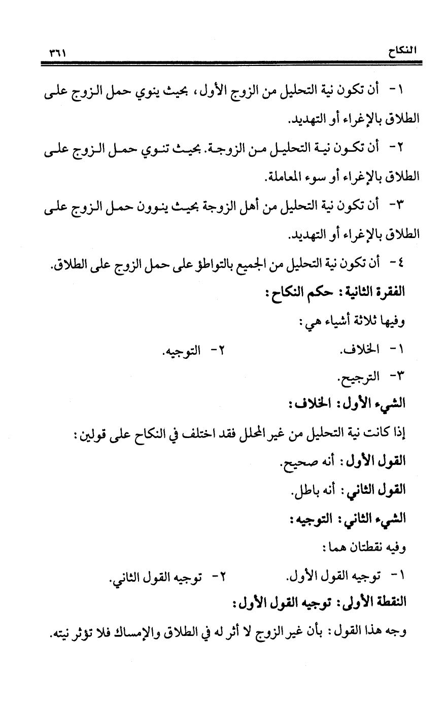1 - أن تكون نية التحليل من الزوج الأول، بحيث ينوي حمل الزوج على لطلاق بالإغراء أو التهديد.