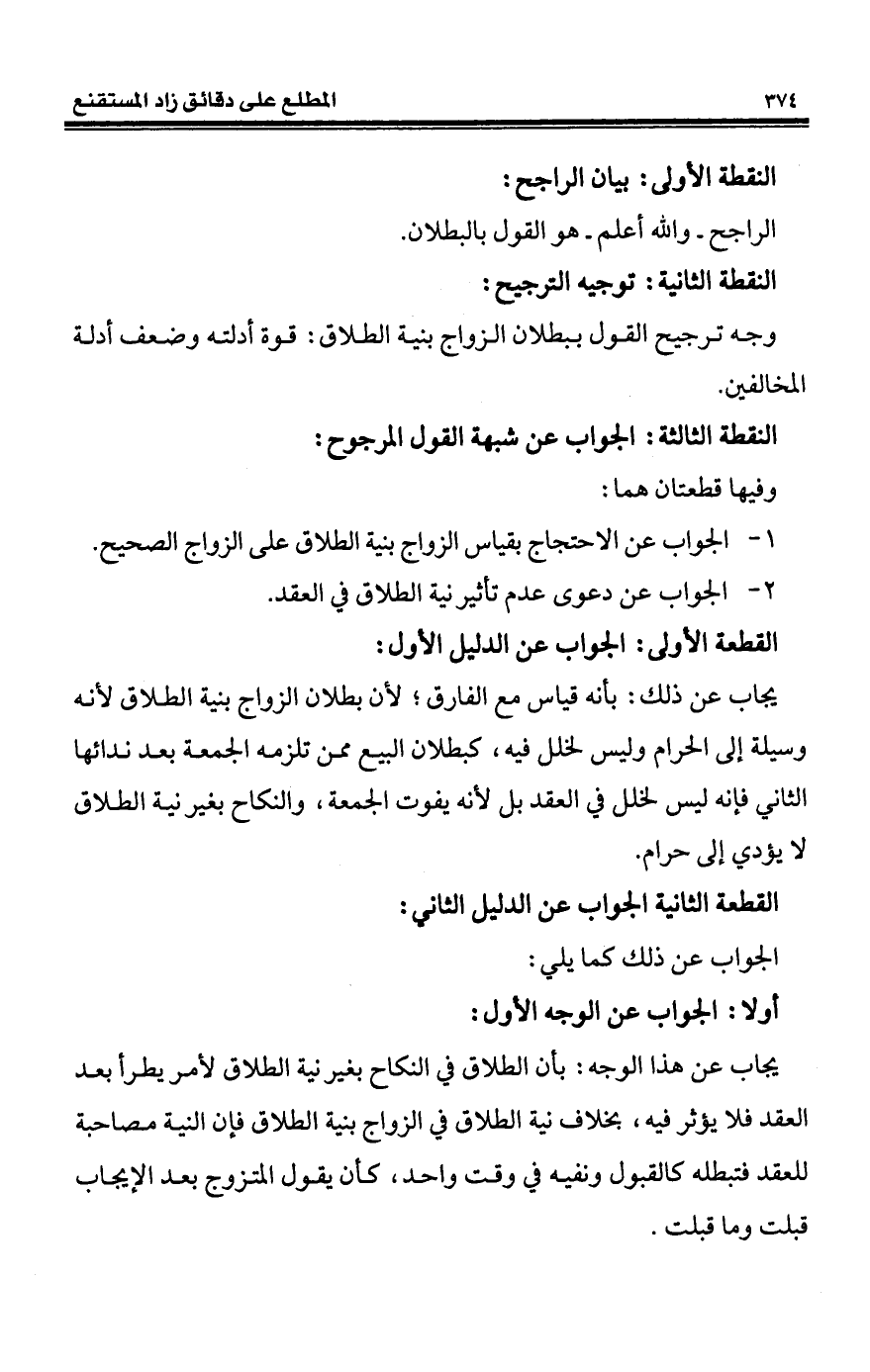1 - الجواب عن الاحتجاج بقياس الزواج بنية الطلاق على الزواج الصحيح.