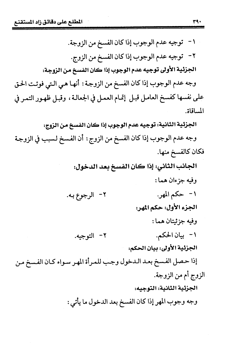 الجزئية الأولى توجيه عدم الوجوب إذا كان الفسخ من الزوجة: